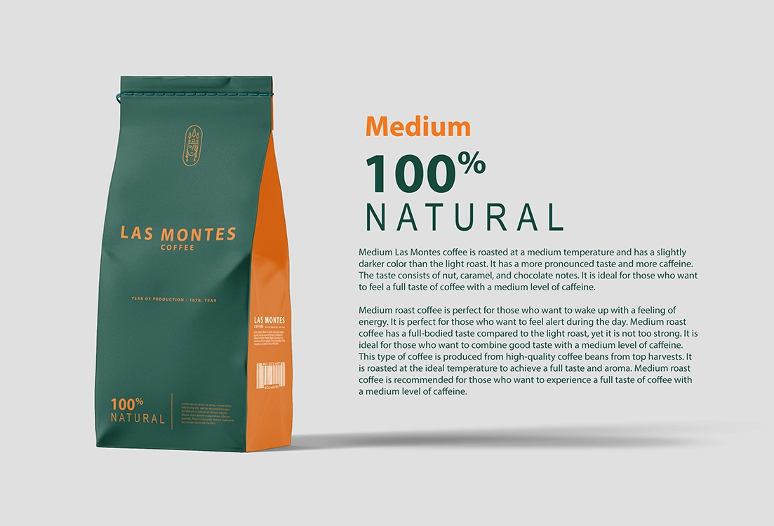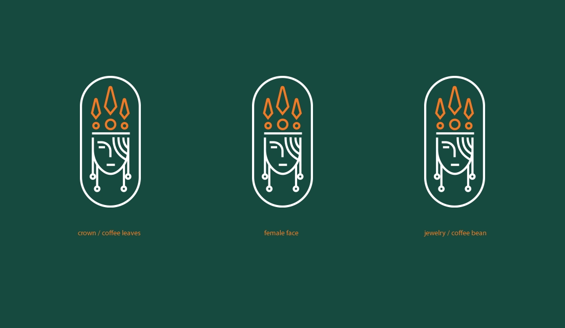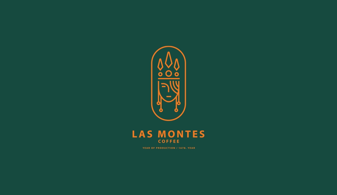 The logo for Las Montes brand of coffee features a woman’s face with a crown made of coffee beans and leaves. The crown symbolizes the high quality and premium nature of the brand’s coffee, while the woman’s face represents the elegance and sophistication associated with the brand. The jewelry, which is also made of coffee beans, adds to the overall theme of the logo and reinforces the connection to the brand’s main product. The logo is designed to convey a sense of luxury and refinement, emphasizing the superior quality of the coffee offered by the brand. The color of the logo is orange, which represents cheerfulness, energy, and positivity, while the background is dark green, which symbolizes nature and freshness. The combination of these colors gives a feeling of freshness and naturalness, which fits perfectly with the theme of coffee.